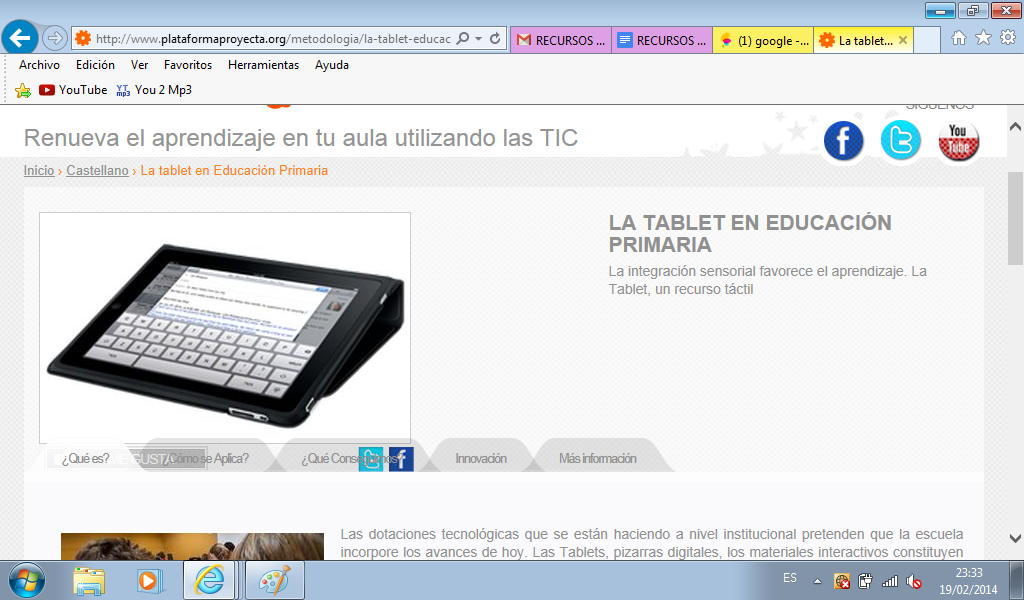 Recorrido: Para encontrar este recurso hemos puesto en Google "Webs institucionales Primaria" y hemos pinchado en "4 enlaces a páginas webs institucionales". En ella entramos en el Ministerio de Educación y pinchamos en la pestaña de Educación. Buscamos a la derecha el apartado de Profesores y dentro de este el de Recursos Educativos.